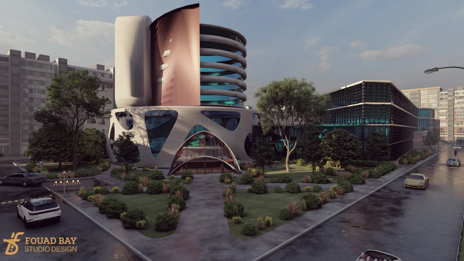 The exterior blends sleek glass elements with regional design motifs, creating a timeless yet culturally relevant structure.